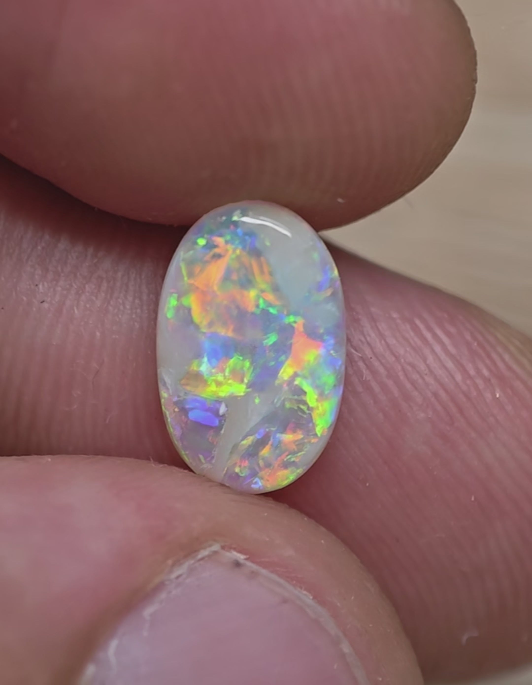 A stunning and rare crystal opal with brilliantly bright red, orange, yellow and green layered 3D colour play. Very affordable gem grade crystal opal.