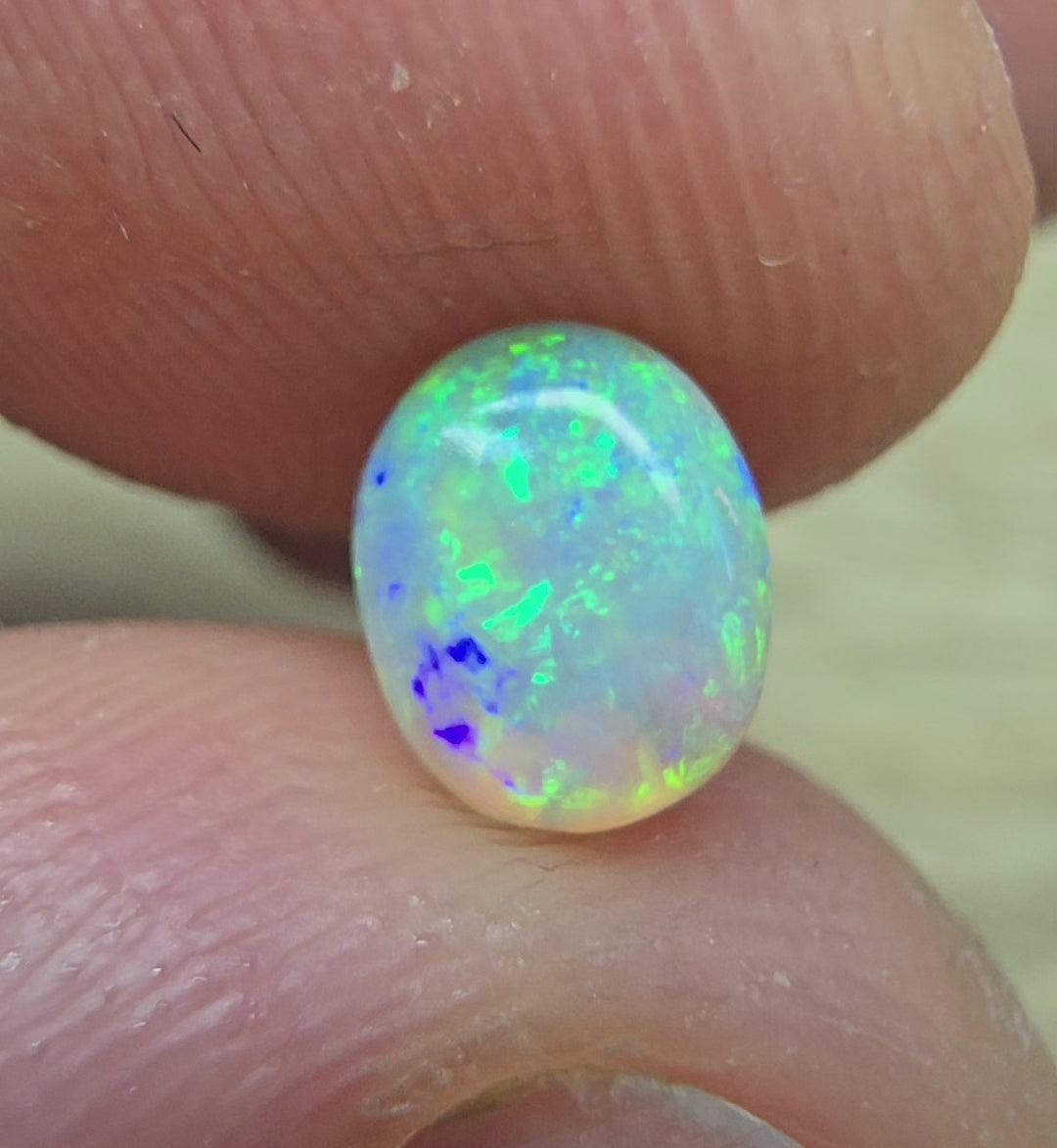 A beautiful little crystal opal that displays bright green colour play. Would make an excellent affordable high quality ring stone.